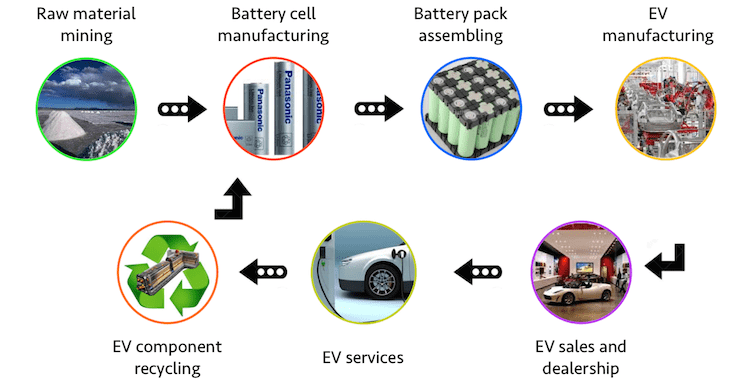 아래는 EV 의 주요 밸류체인 설명도입니다. 각 구성이 시장이 된다고 이해하시면 됩니다.