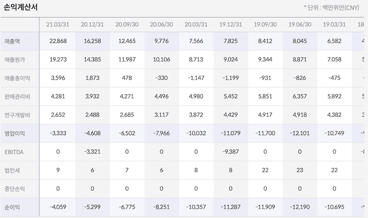 매출액은 꾸준이 오르고 있으나 아직 영업이익은 마이너스 수준입니다.